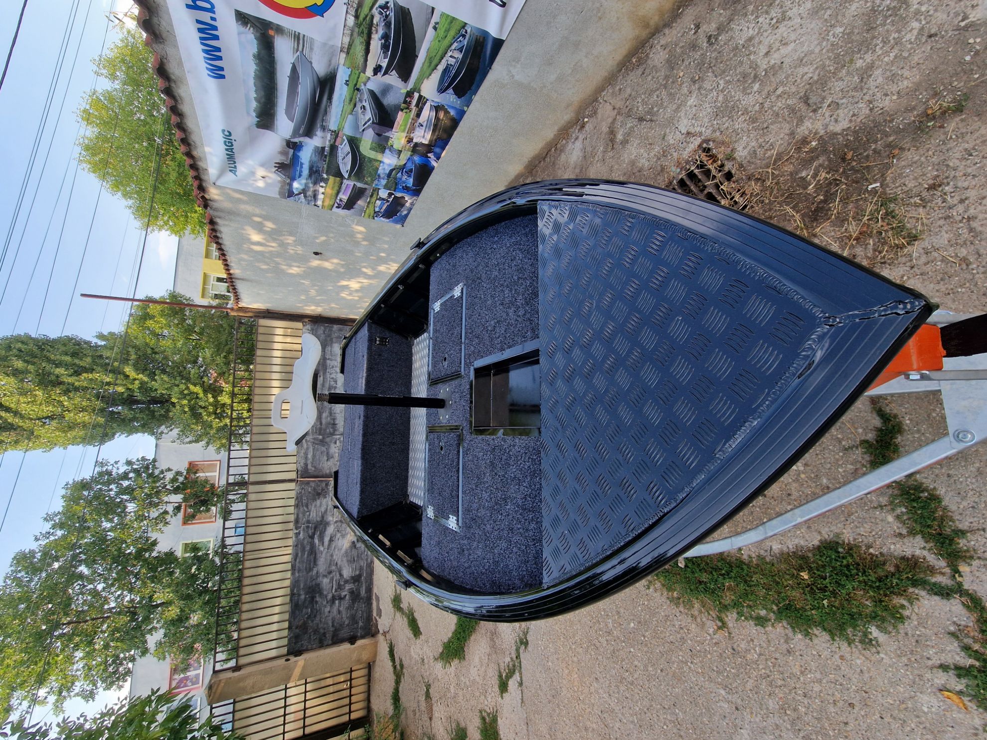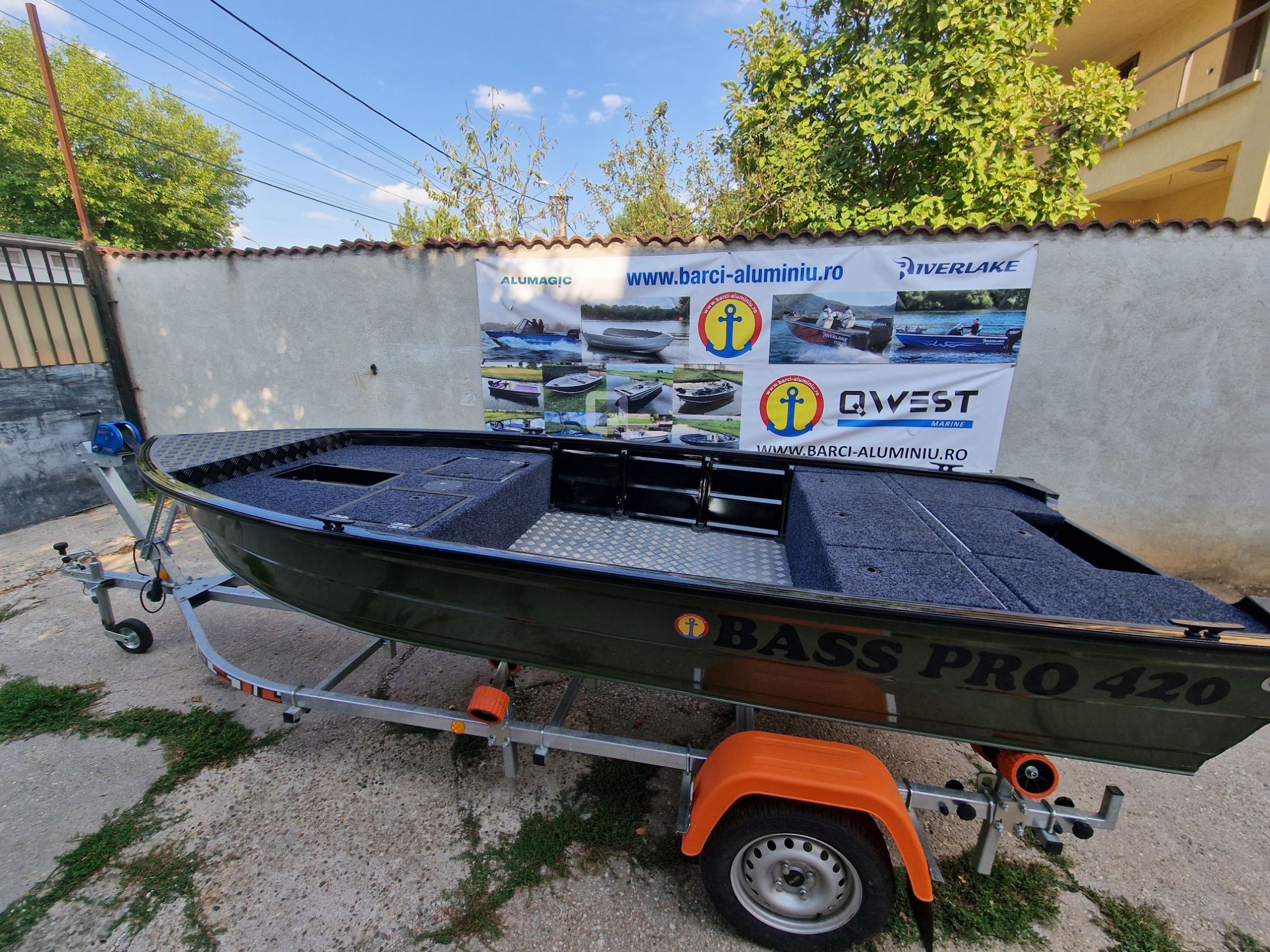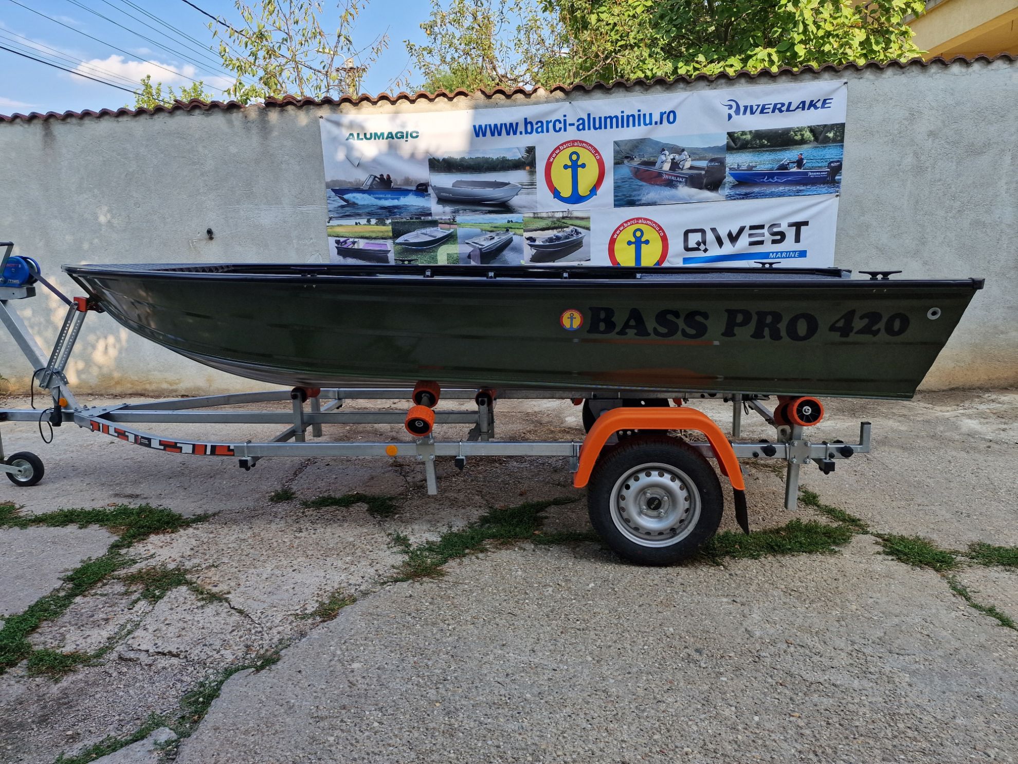 Barca aluminiu BassPro420 cu platforme spining - pt motor cizma lunga