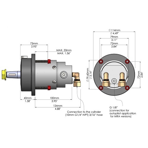 Cilindru hidraulic MC 175WTS, 86cc volum, stroke(distanta pe care circula cilindrul) 208mm
