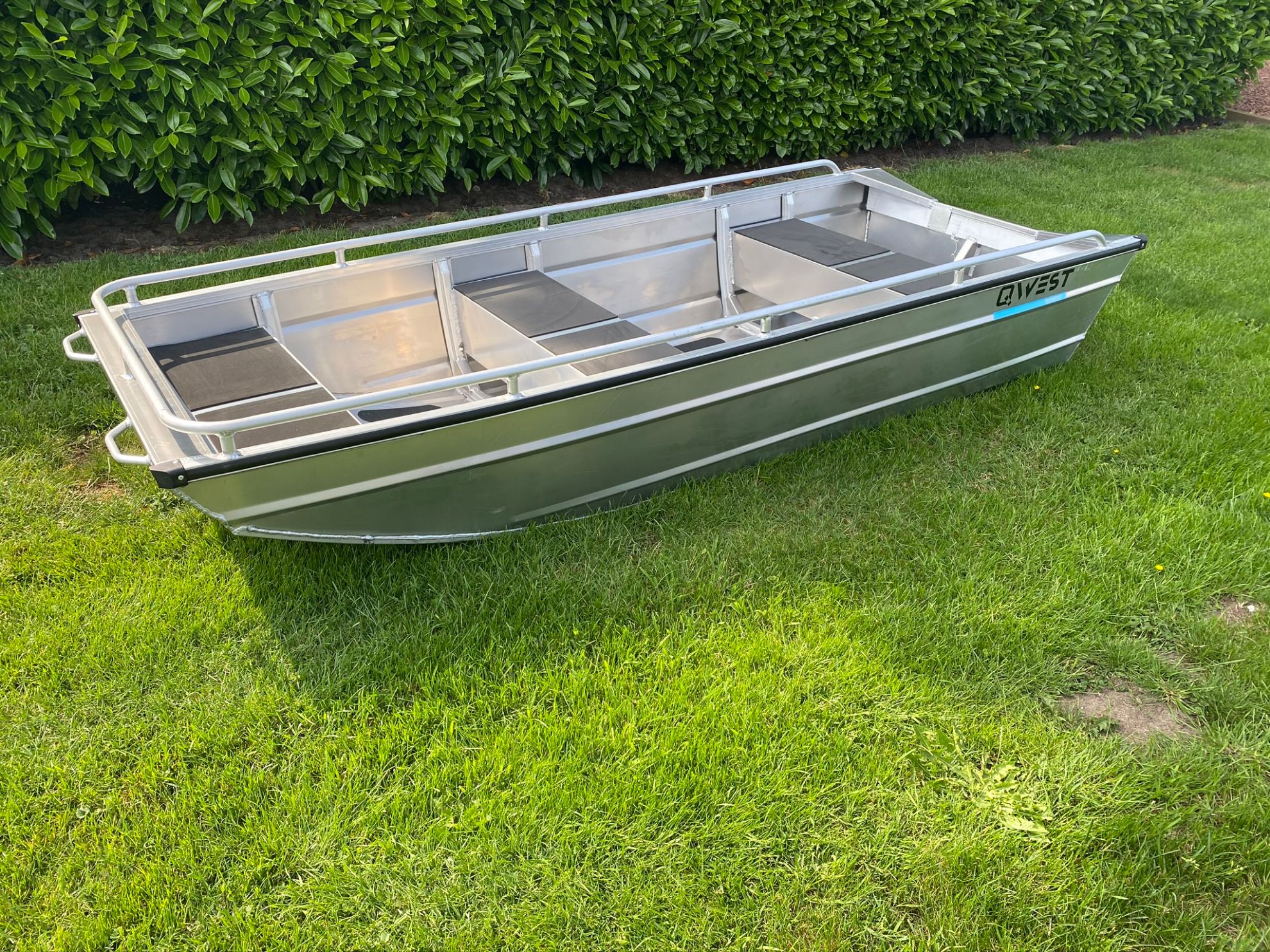 Seria F de la QWEST Marine este o serie perfectă pentru apele puțin adânci. Bărcile sunt construite cu un fund plat, ceea ce face ca barca să fie foarte stabilă. F301 este realizat din aluminiu sudat de 2 milimetri . Acest lucru asigură că barca este ușoară dar in acelasi timp robusta . Banchetele sunt pline cu spuma PE pentru ca barca sa nu se scufunde in caz de rasturnare . Puteți dota barca cu un motor electric pentru o navigare silentioasa sau cu un motor termic pentru un plus de putere . Datorita greutatii reduse acest model se poate transporta pe plafonul masinii .