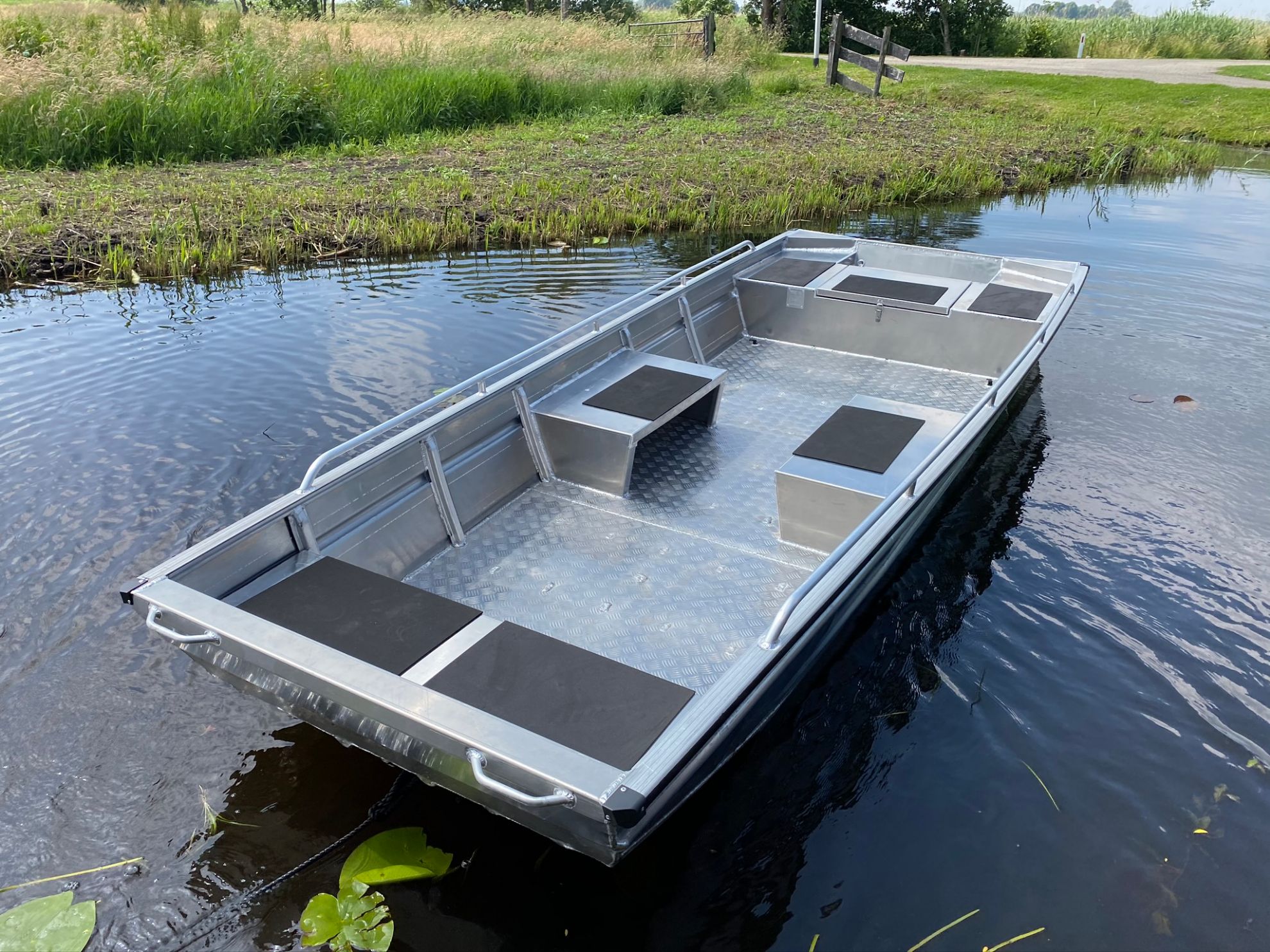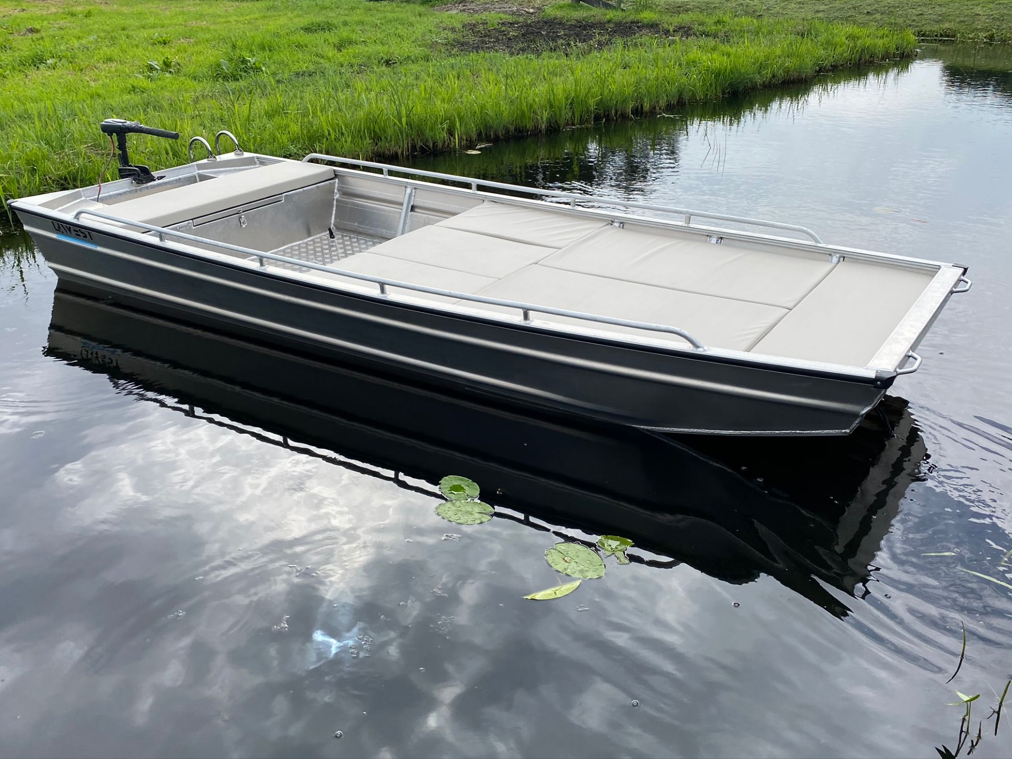Seria F de la QWEST Marine este o serie perfectă pentru apele puțin adânci. Bărcile sunt construite cu un fund plat, ceea ce face ca barca să aiba un pescaj foarte mic dar sa fie si foarte stabilă . F451 este realizat din aluminiu sudat de 3 milimetri . Acest lucru asigură că barca este foarte robusta . Modelul F451 este construita cu podea cu autodrenaj ( apa de ploaie este evacuată automat fara a fi nevoie de pompă de santină ) si toată podeaua este etansă, functionănd ca o pernă de aer ce asigură nescufundarea bărcii . Puteți dota barca cu un motor electric pentru o navigare silentioasa sau cu un motor termic pănă la 30CP pentru un plus de putere. In pupa exista un compartiment etans pentru rezervor, baterie si depozitare .