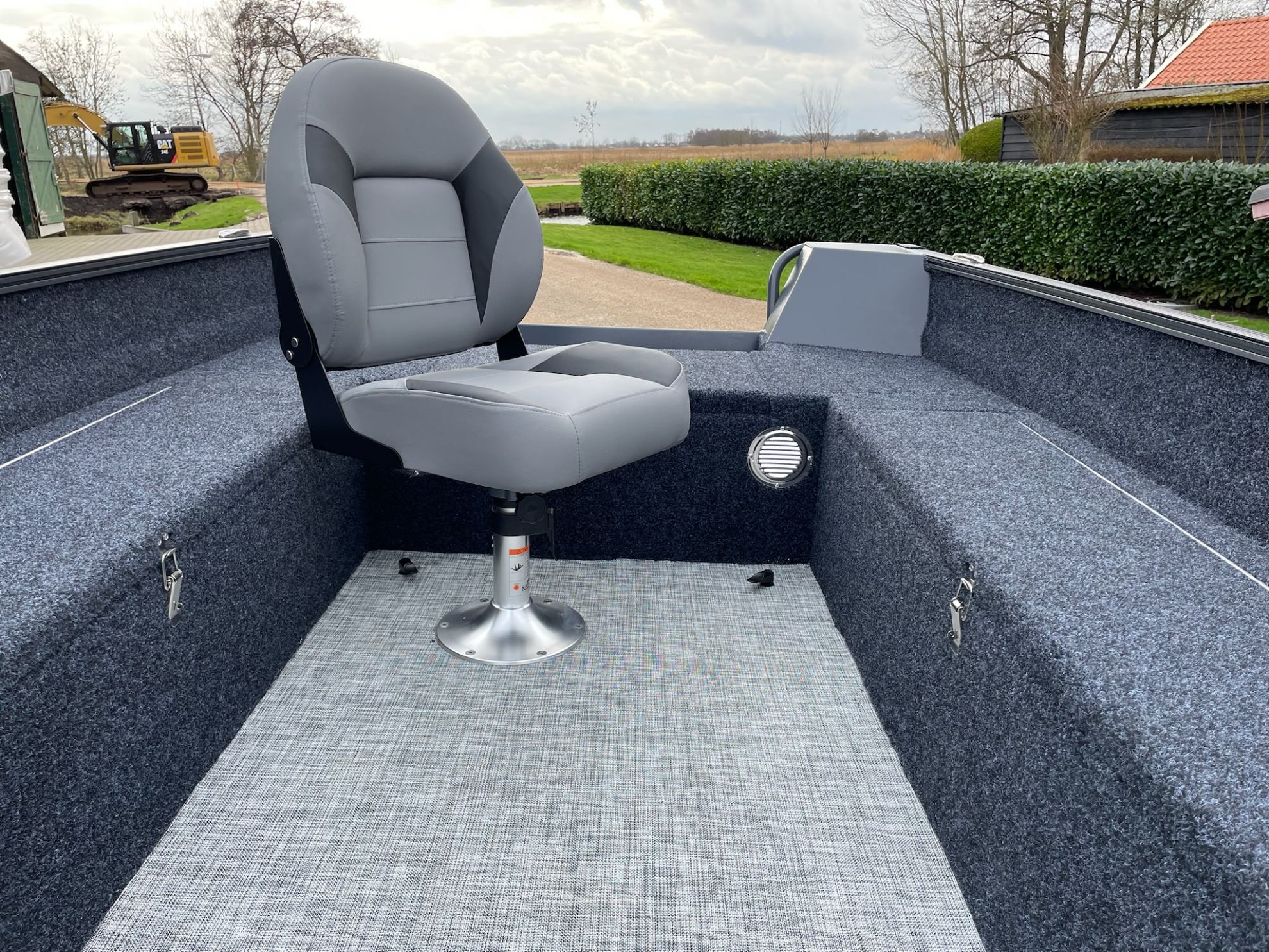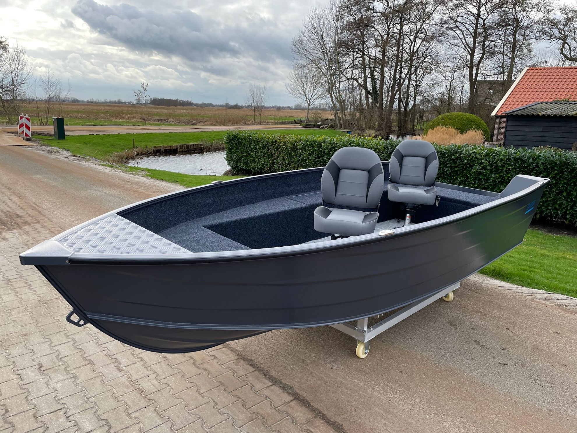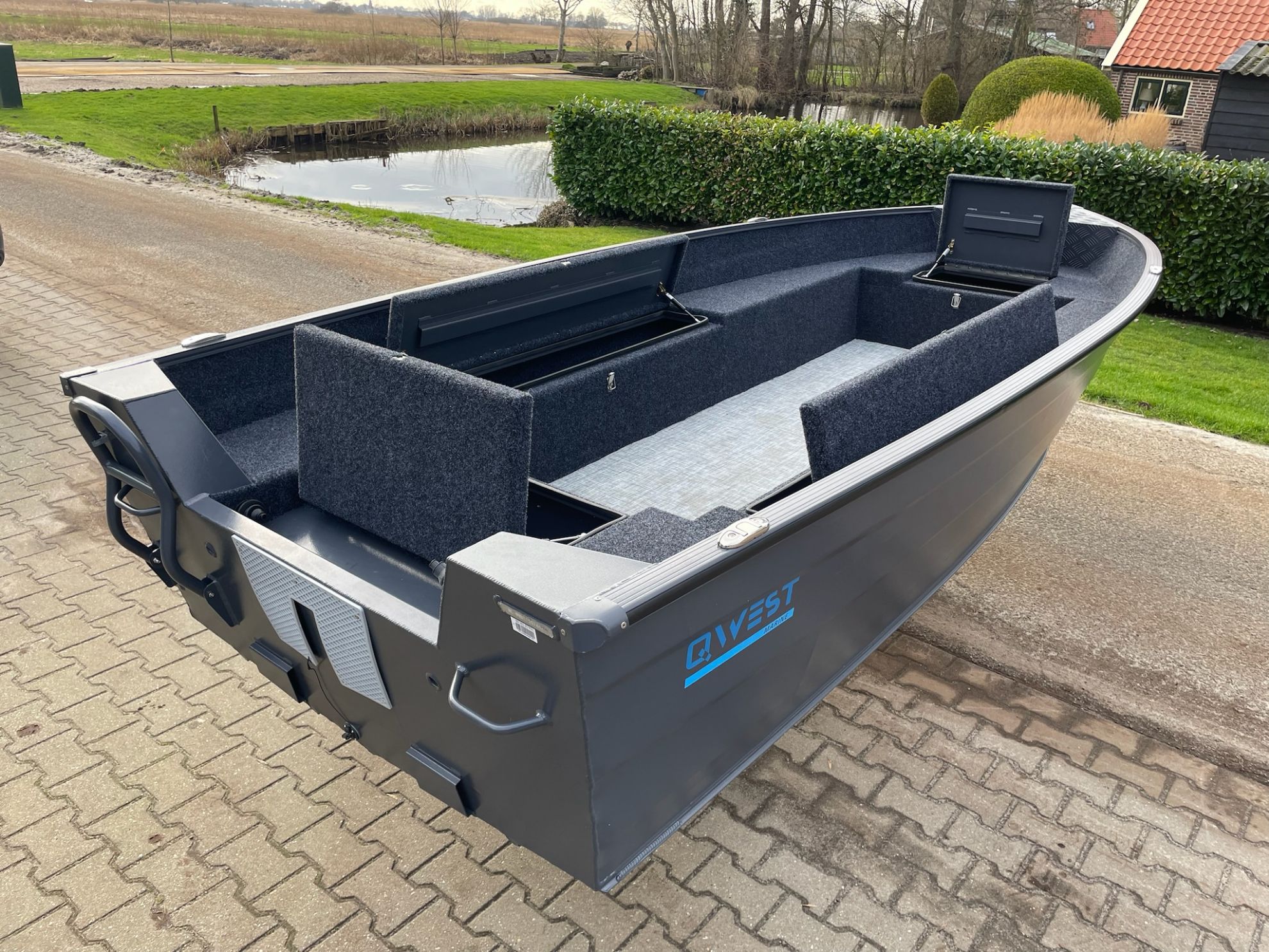 ● echipată cu o placă de aluminiu in prova pentru montarea motorului electric de provă si o placă sudata in pupa pentru montaj sondă fishfinder .